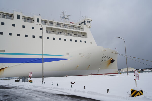 朝4時半頃に北海道上陸.とりあえず小樽は道の両脇に大きな雪山が.google maps の指示する道が平和であることを願いつつの移動.
