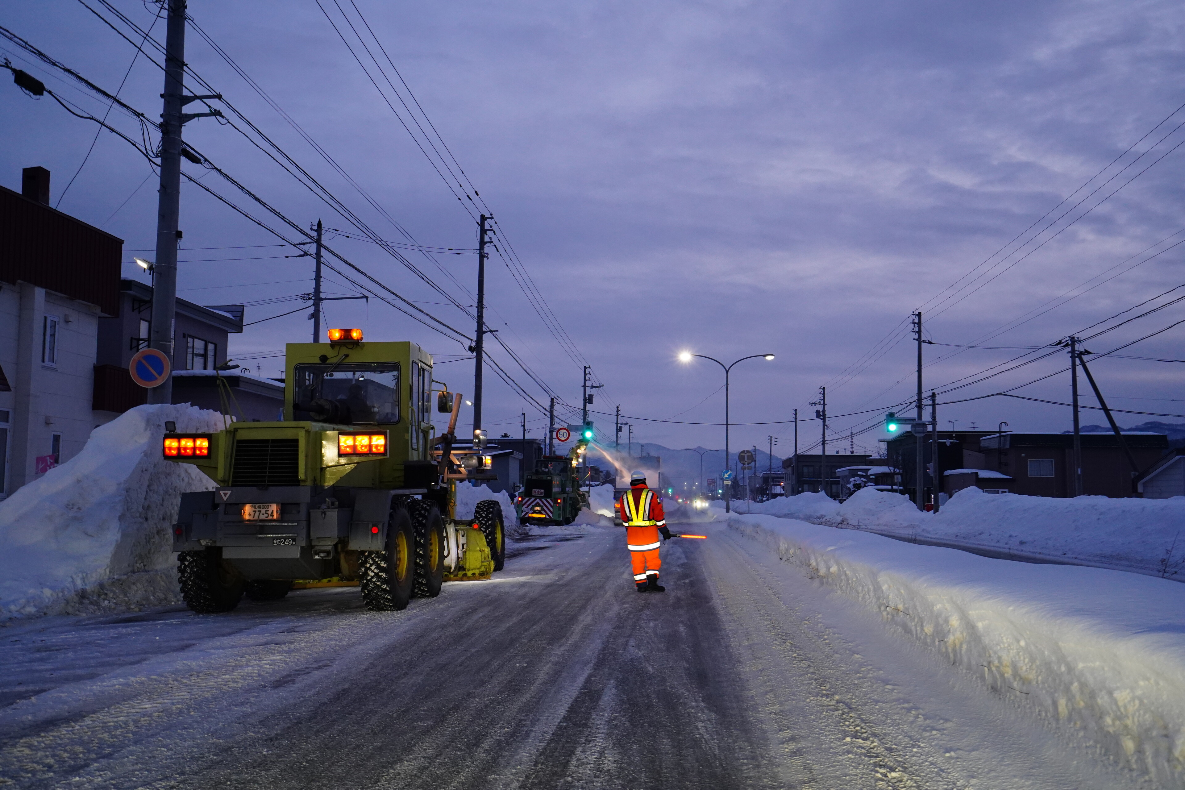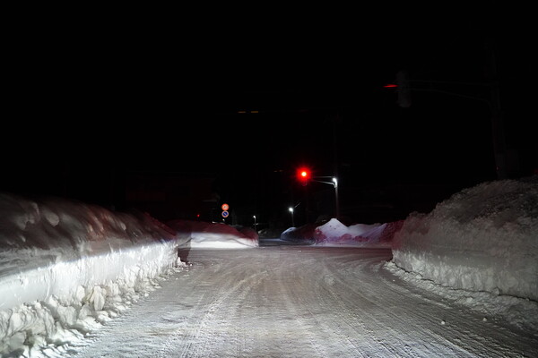 朝4時半頃に北海道上陸.とりあえず小樽は道の両脇に大きな雪山が.google maps の指示する道が平和であることを願いつつの移動.