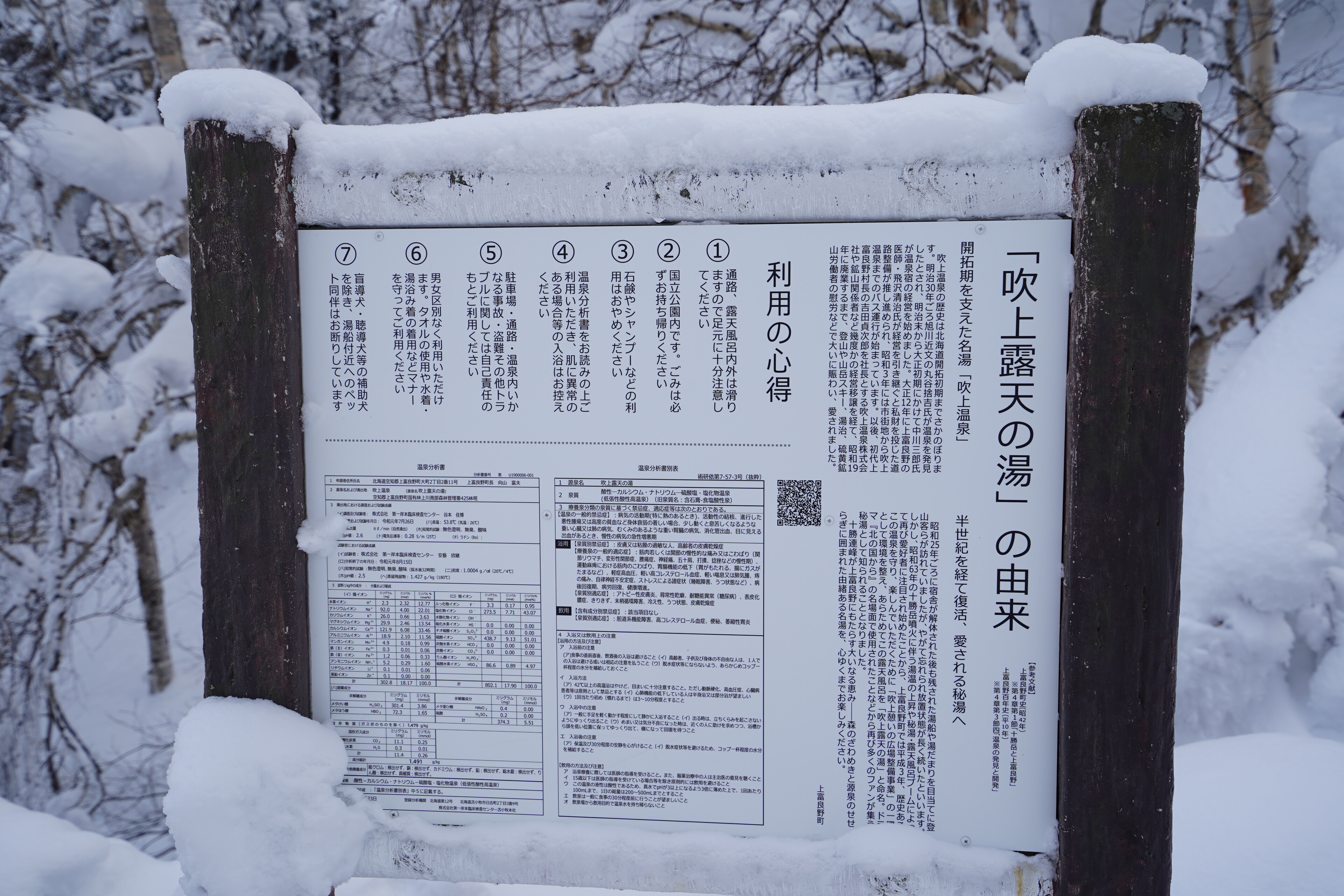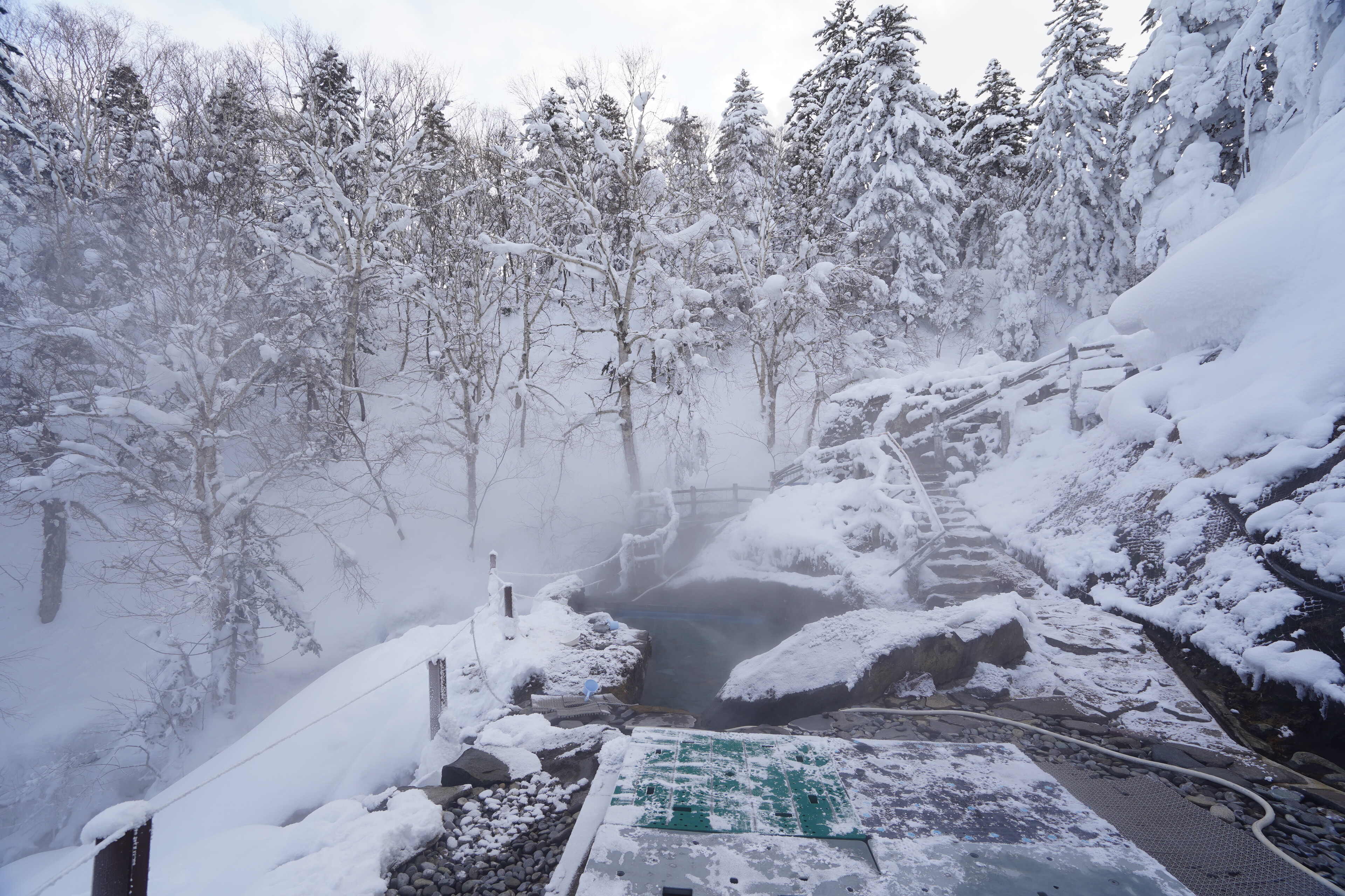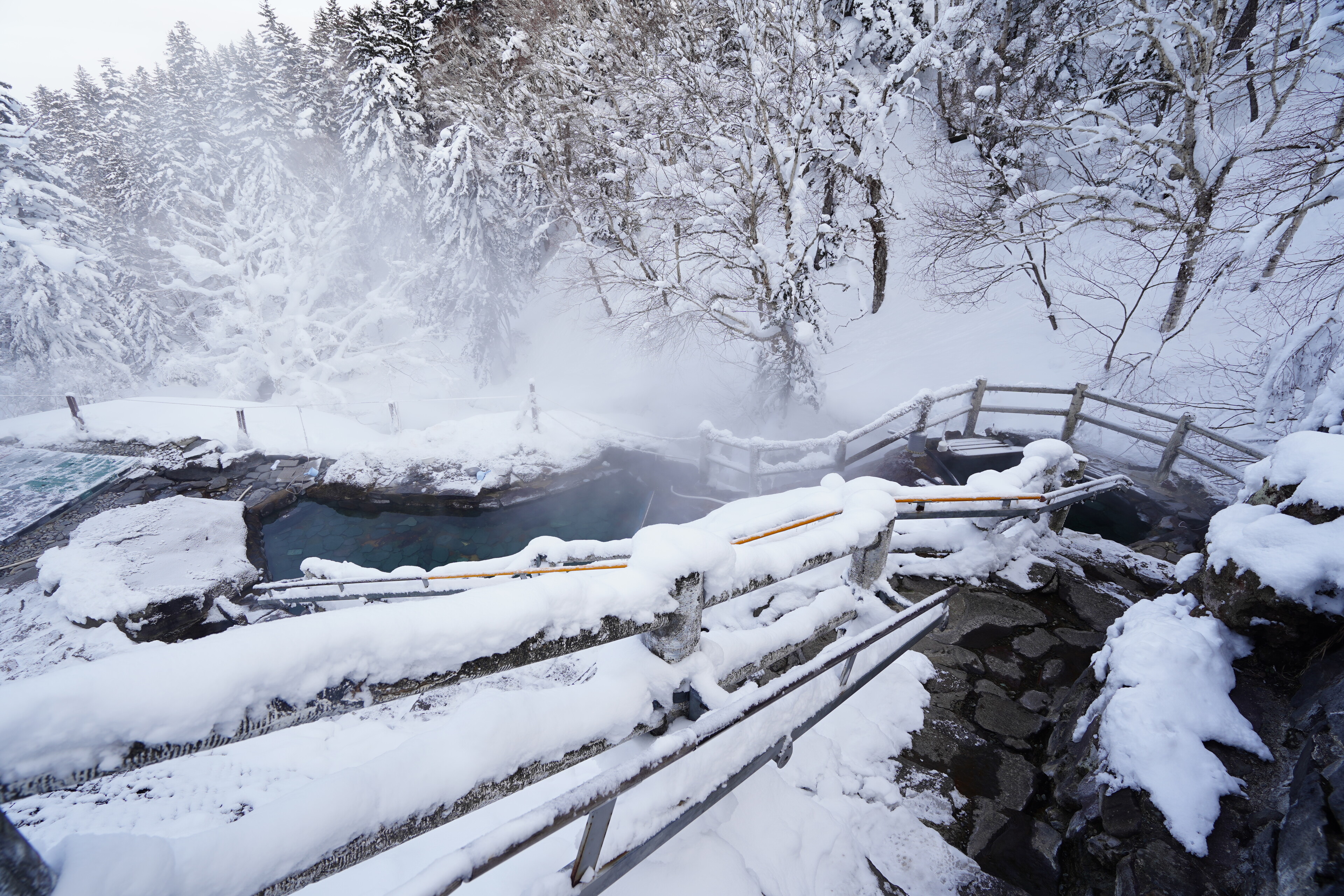 露天風呂は駐車場横の川の雪景色が楽しめた.若干の硫黄臭がしつつぬるっとする感じのお湯で,平日の15時とかだったので広い湯船を独占する感じだった.とても満足.温泉のためだけにここまで来るかと言われると悩ましいけれど.