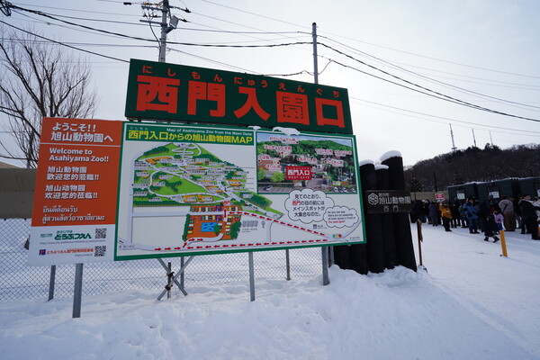吹上露天の湯からちょっと移動して10時半前に旭山動物園へ到着.西門には既に待機列ができていた.