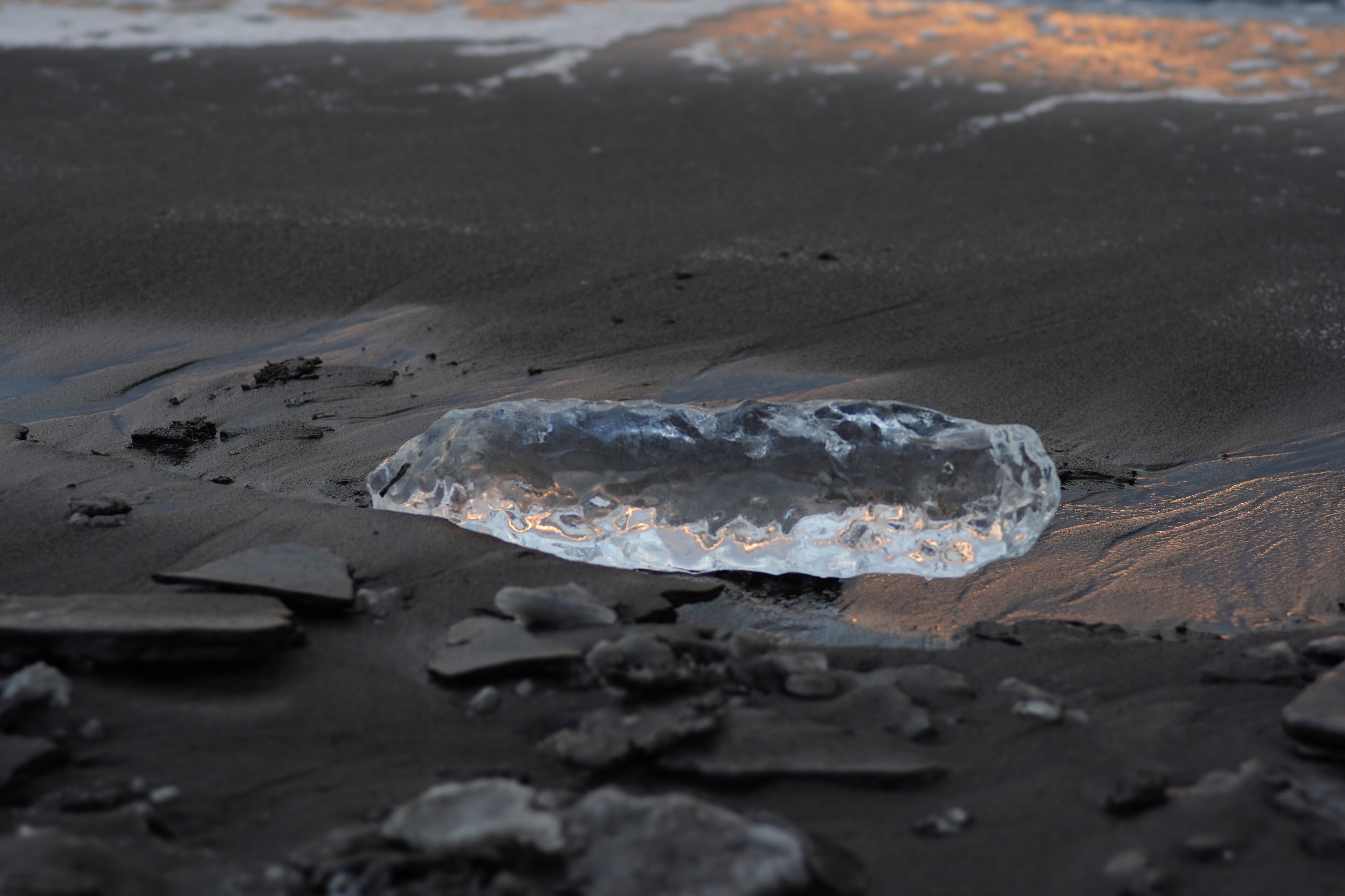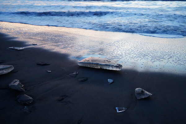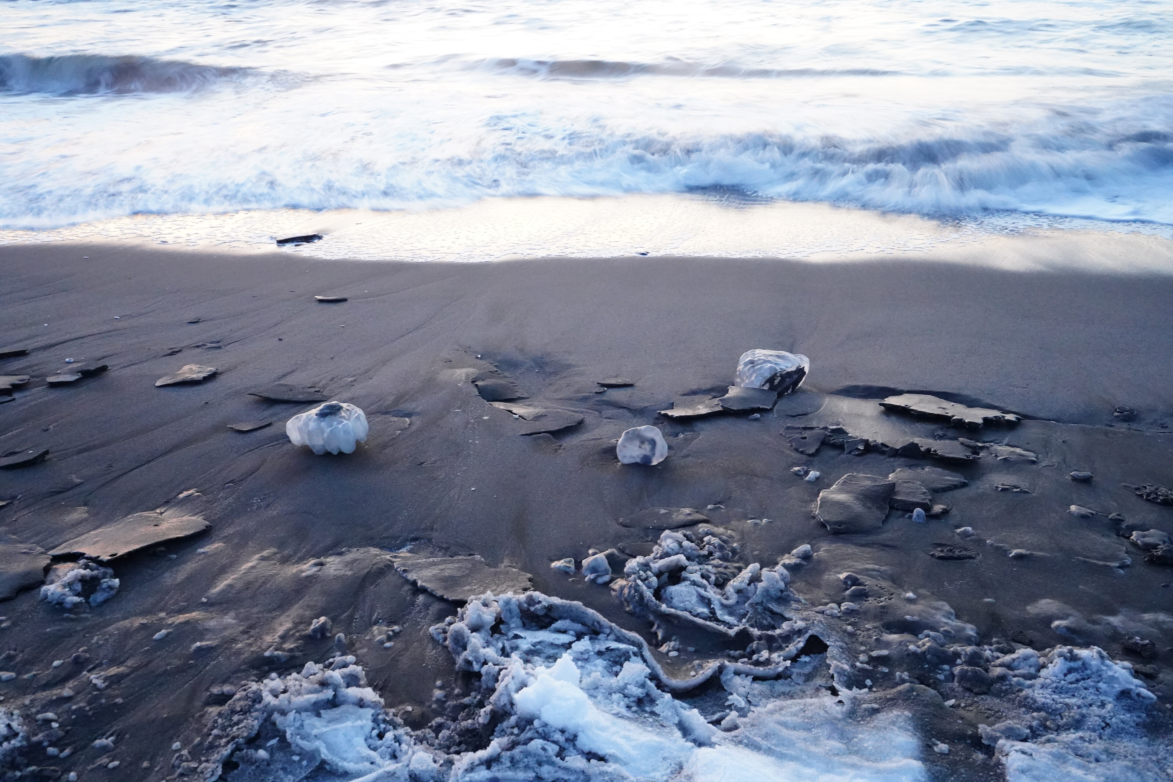 そして波のかかる辺りには透明な氷がちらほら.前回より多い感じ.