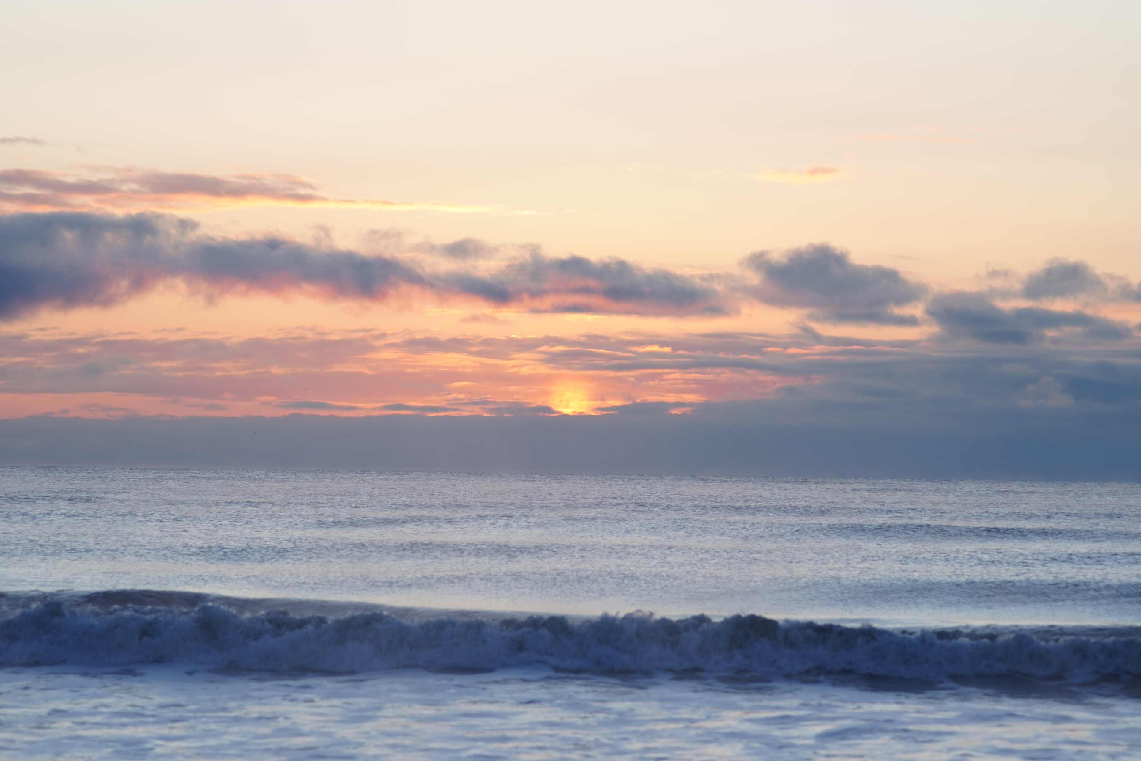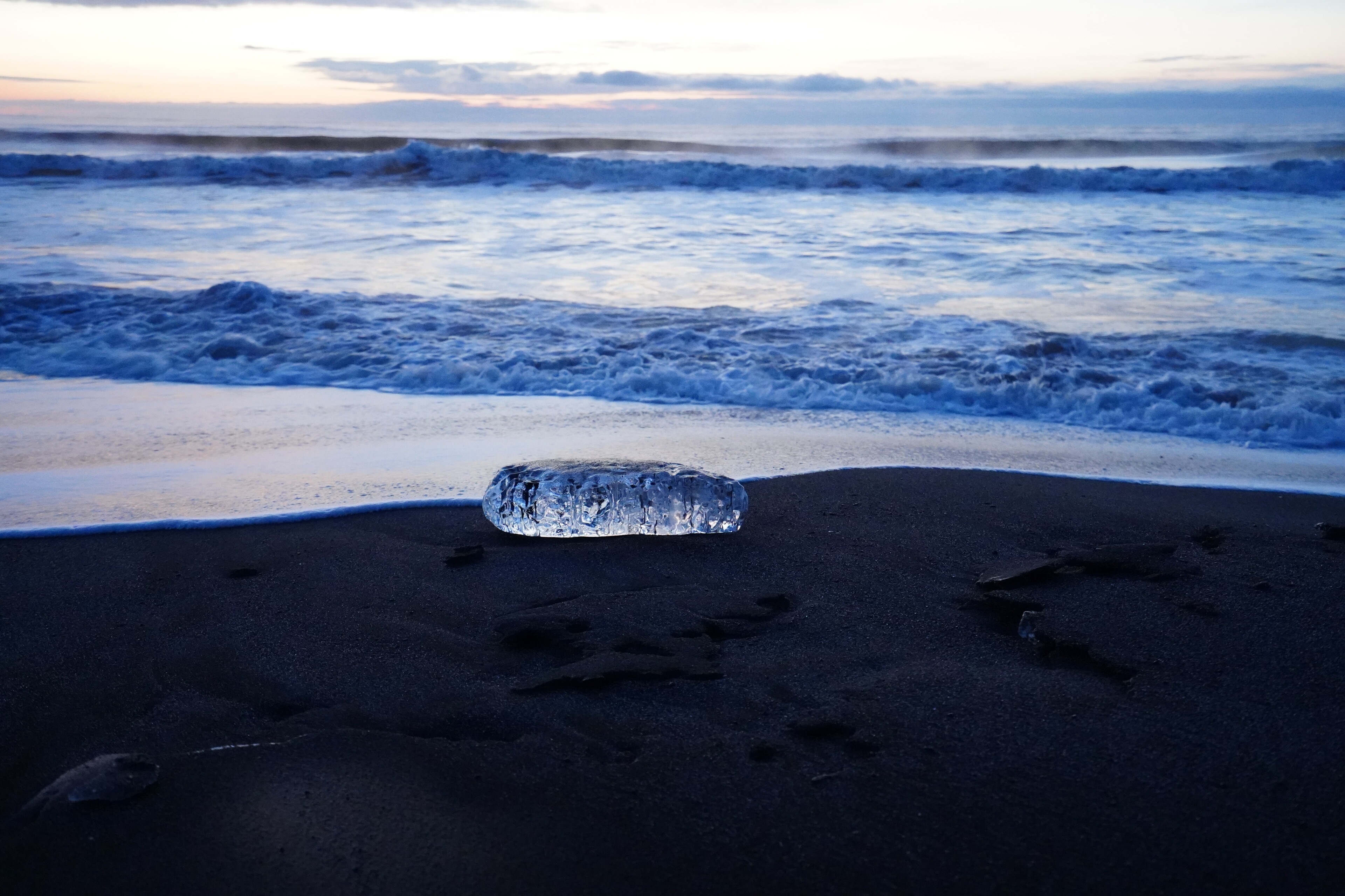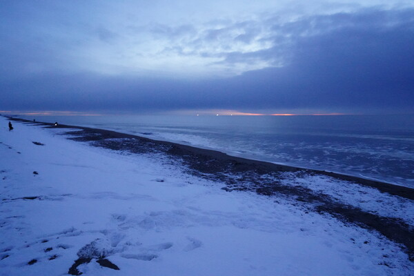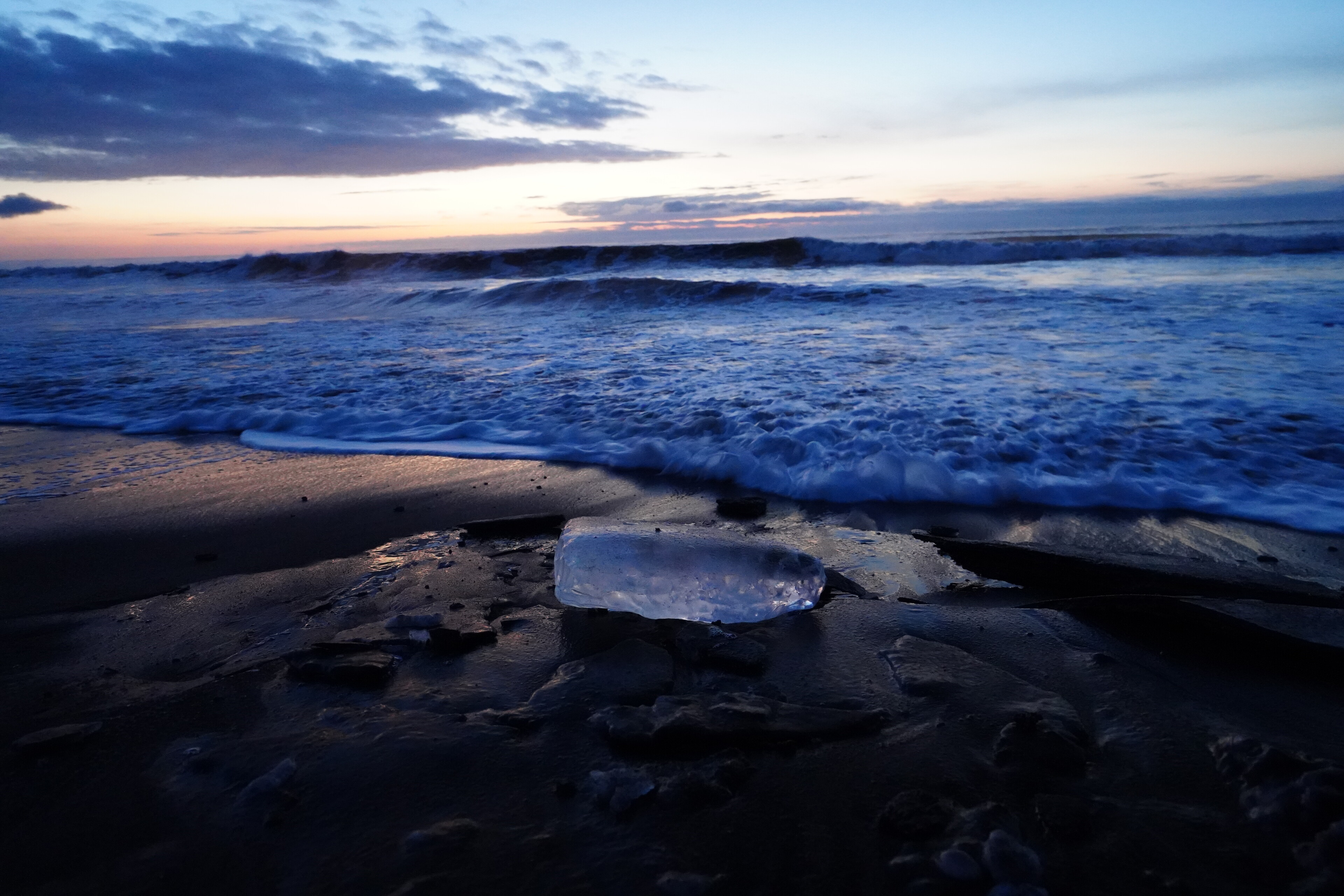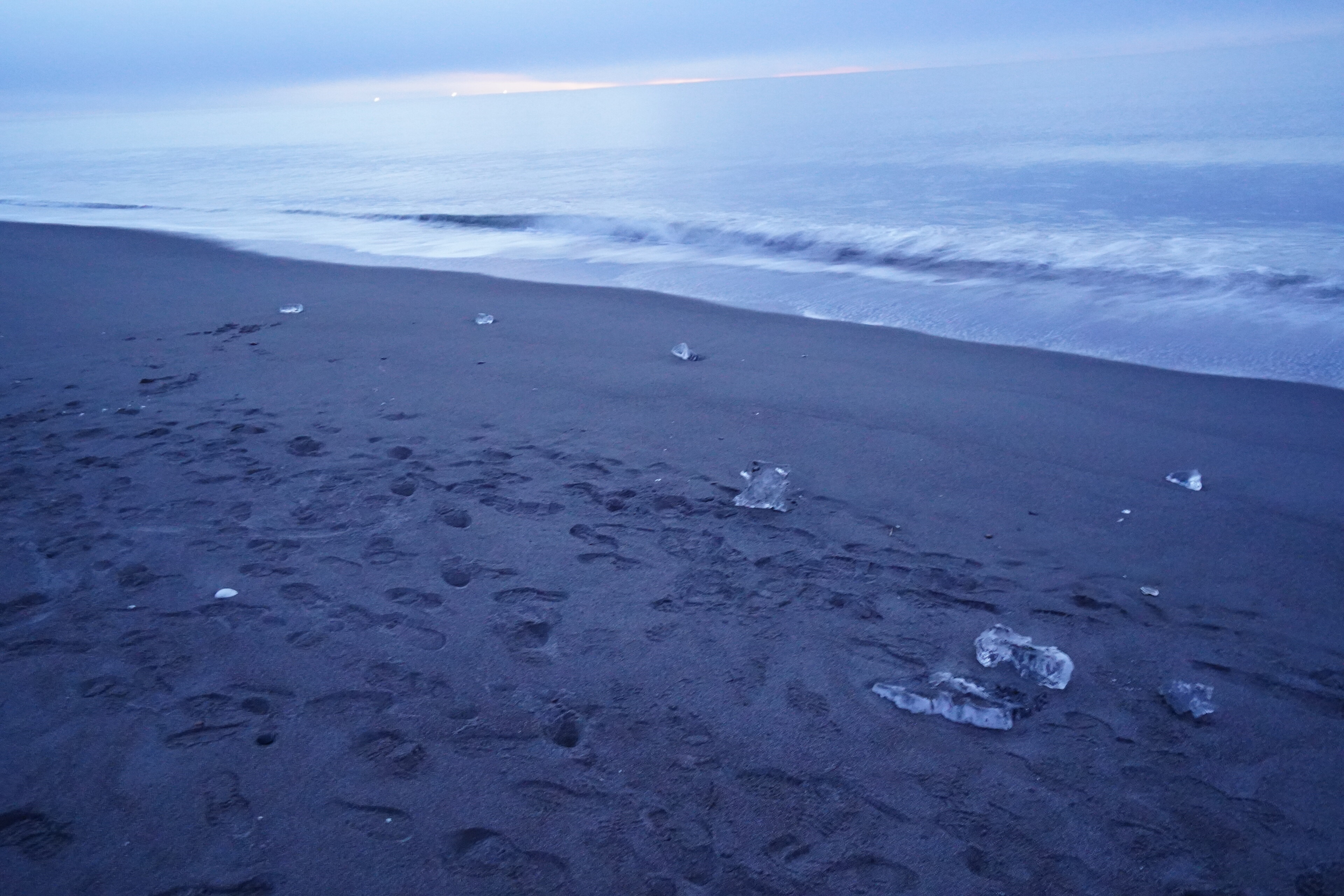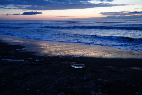 今日は早起きして朝6時頃に大津海岸へジュエリーアイスを見に行った.夜明けの空が綺麗.