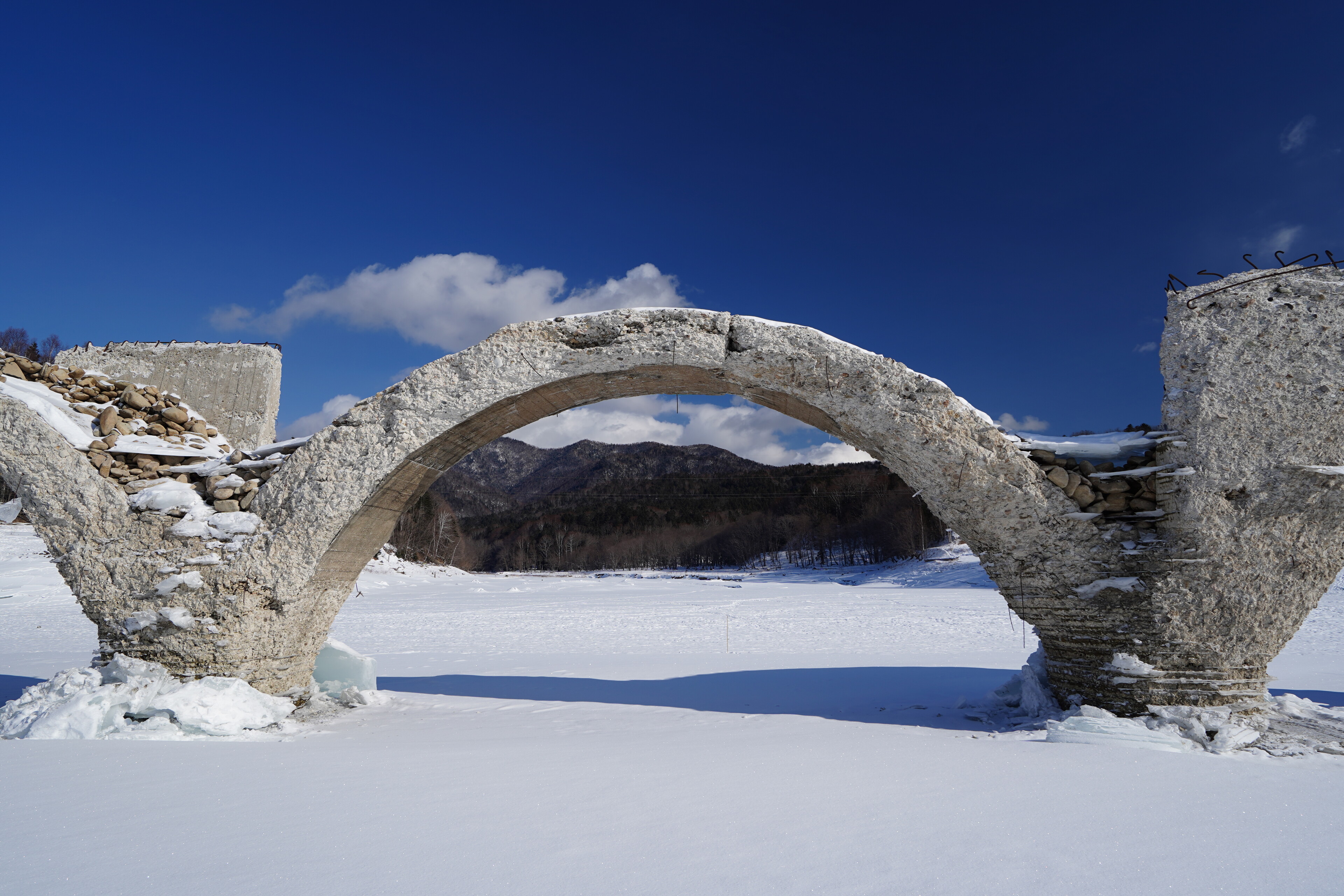 そして氷の割れに気をつけつつ橋の根本へ上がって橋を見る.あんまりこっち方向から見ても面白くないかも?