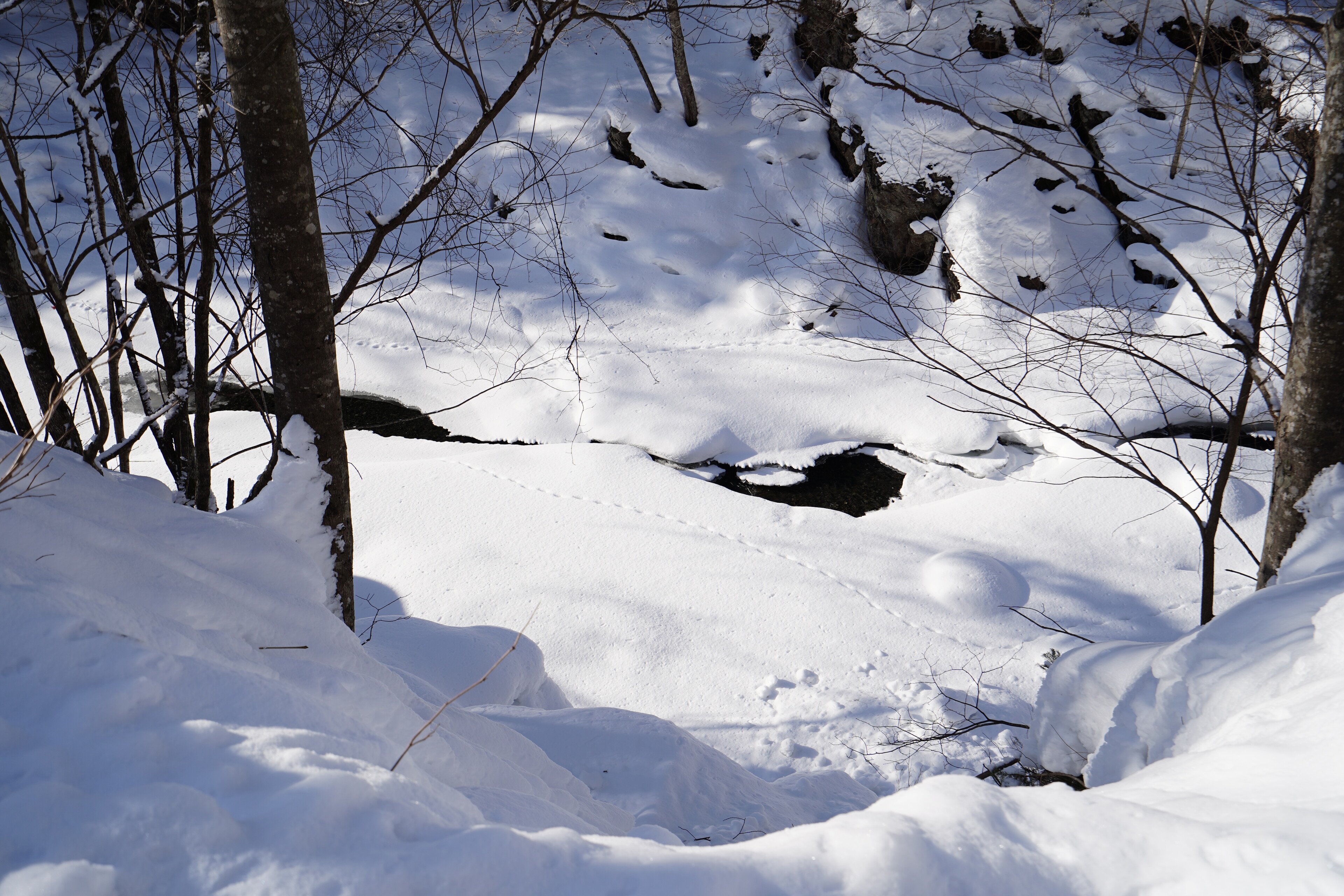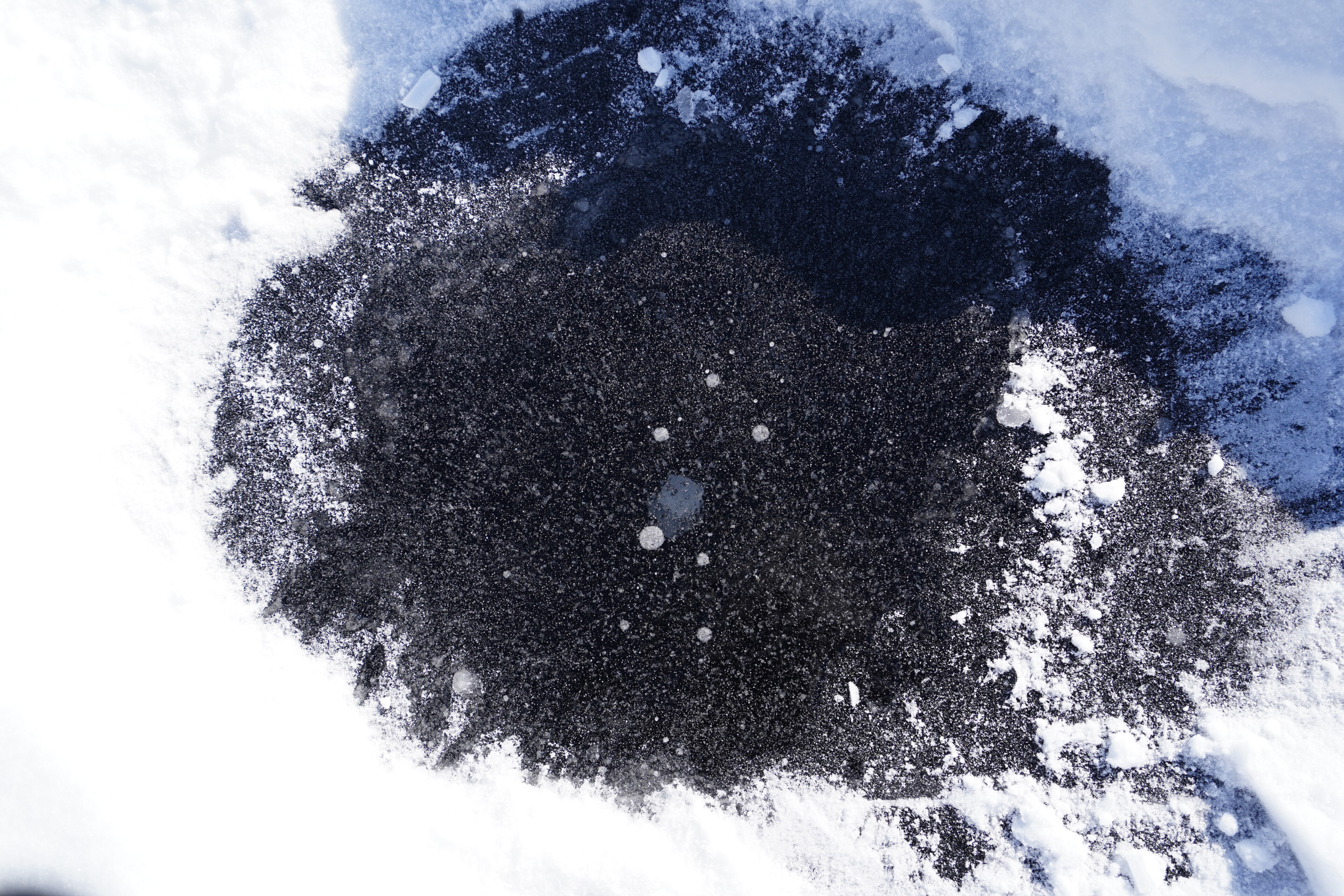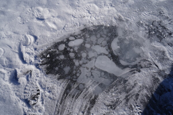 帰りは何箇所かでアイスバブルを観察したっぽい場所があったのでそれらを覗いてみた.なかなか真ん丸のきれいなバブルだけってのは雪があると見つけにくいんかね.雪が吹き飛んだときに来てみたい気もする.