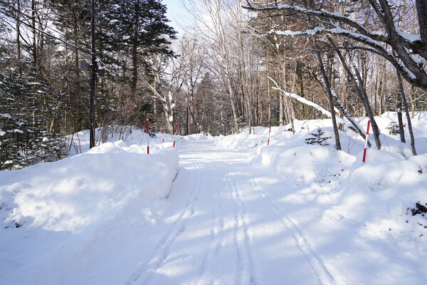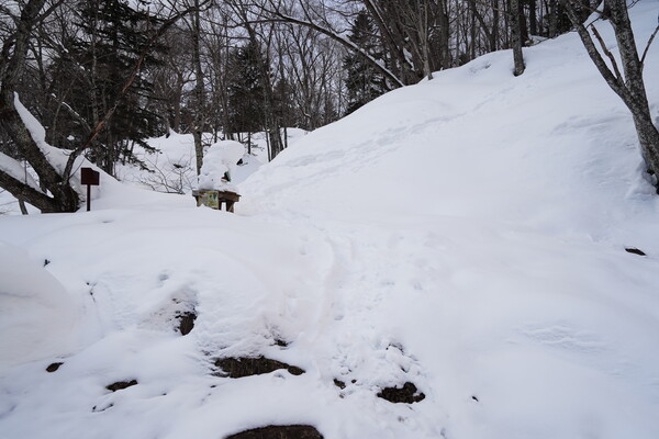 道中は 2人分の往復の足跡.誰も来ないわけではないけど来る人は少ない感じかね.