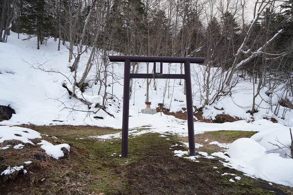 あと,トムラウシ山への登山口(足跡多数)と,トムラウシ温泉神社もあった.とりあえず安全に r718 を降れるようにと参拝.