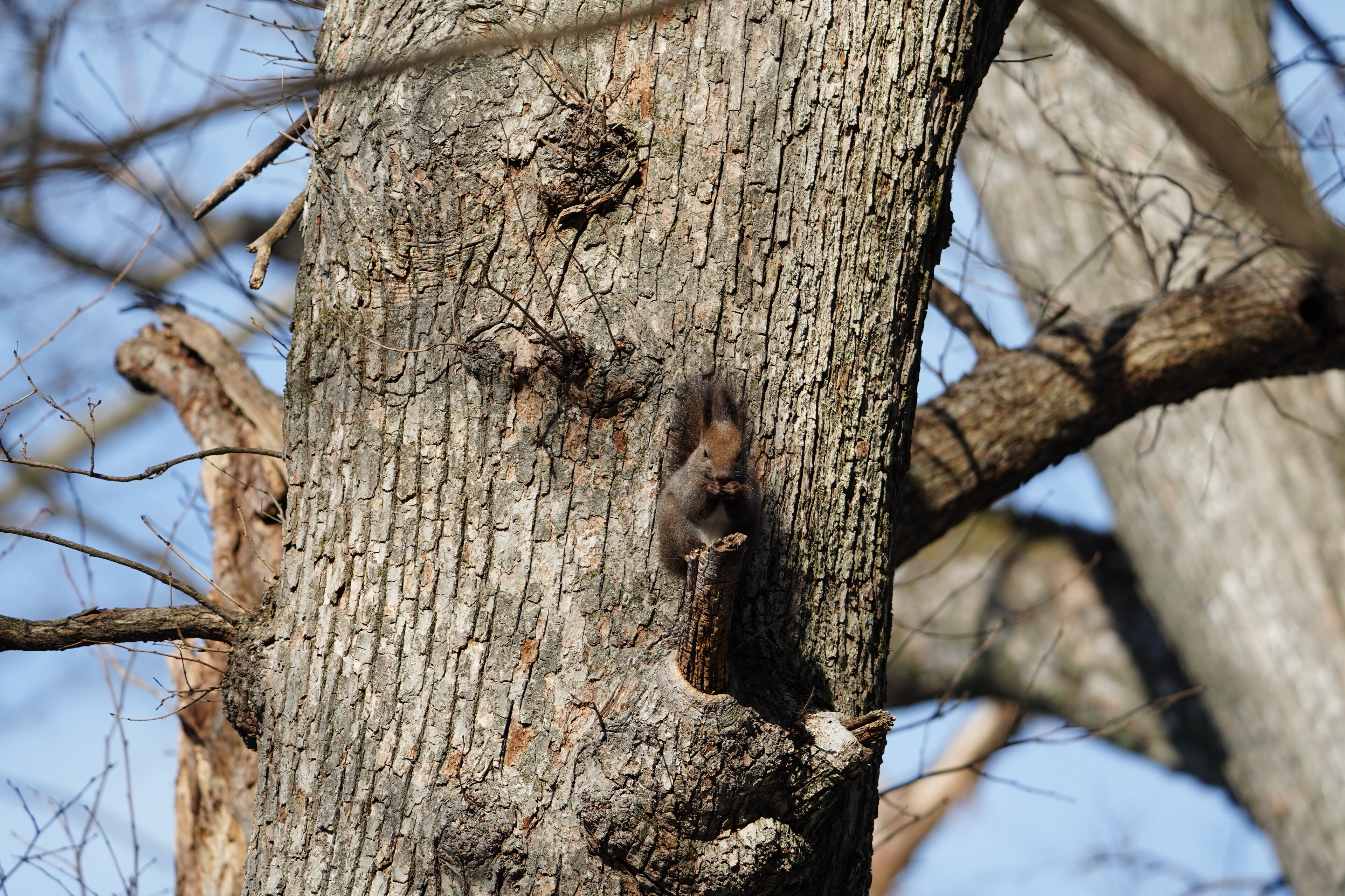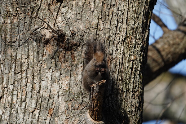 とりあえず参拝したあとに境内の林でエゾリスを発見.800mm だとだいぶ大きく写せるなぁ.